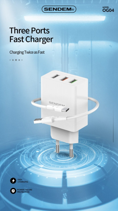 Sendem Wall Charger Micro Cable, 2 USB Ports, 2.4A, White – OG04